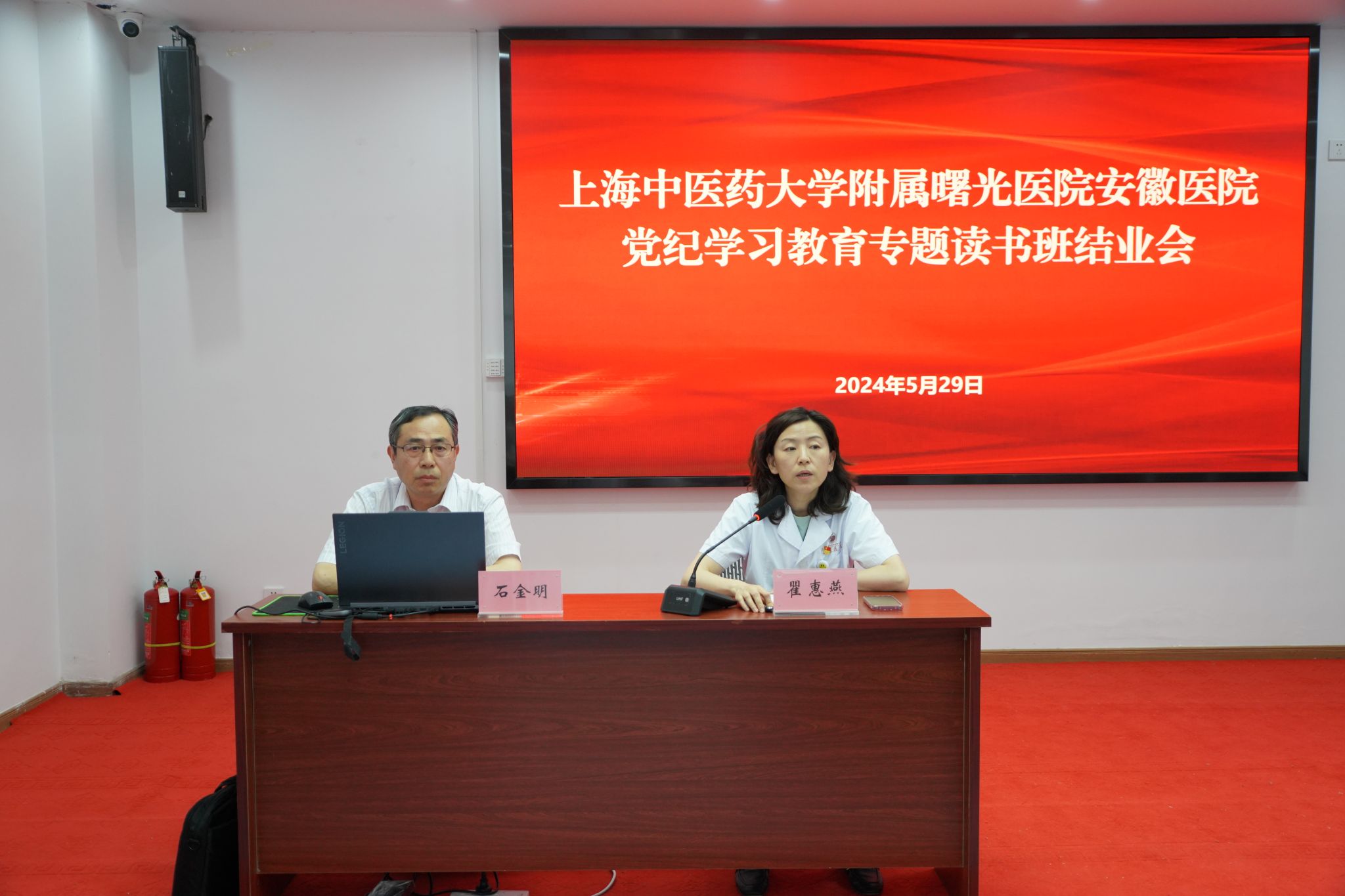 5月29日下午,曙光安徽医院党纪学习教育专题读书班结业。学校党委常委、纪委书记、省监委驻学校监察专员石金明就新修订的《中国共产党纪律处分条例》(简称《条例》)作详细解读,学校党委常委、曙光安徽医院党委书记聂久胜作总结发言。