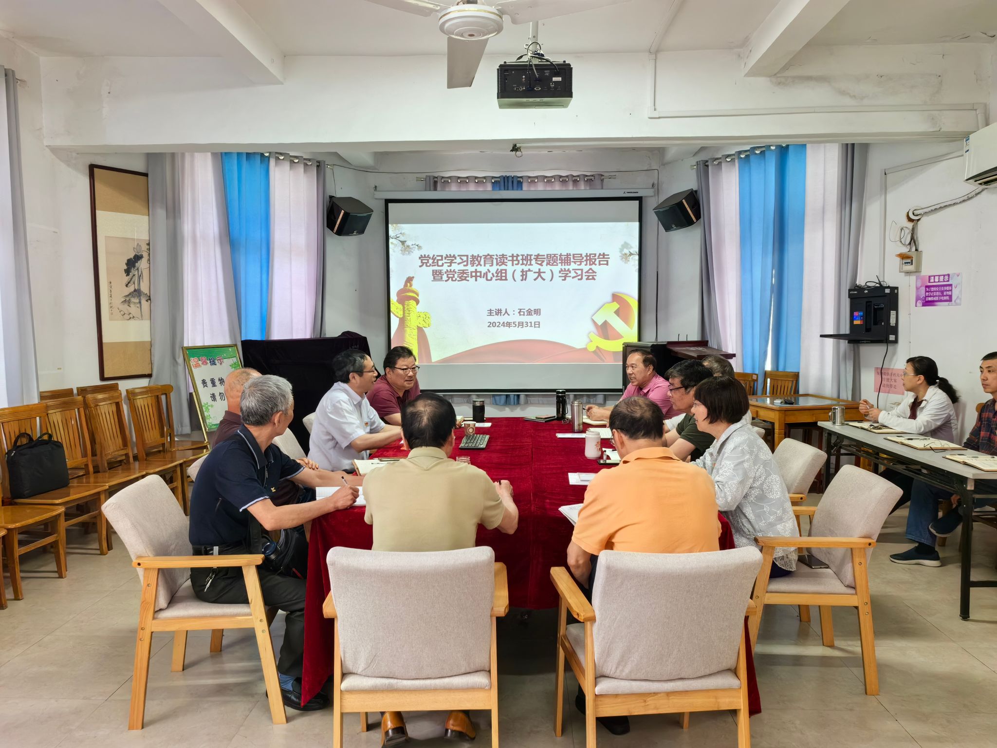 5月31日下午,离退休工作处党委召开党纪学习教育中心组(扩大)学习会,学校党委常委、纪委书记、省监委驻学校监察专员石金明就新修订的《中国共产党纪律处分条例》(简称《条例》)作专题辅导,离退休工作处党委成员、六位支部书记、在职党员等参加学习。