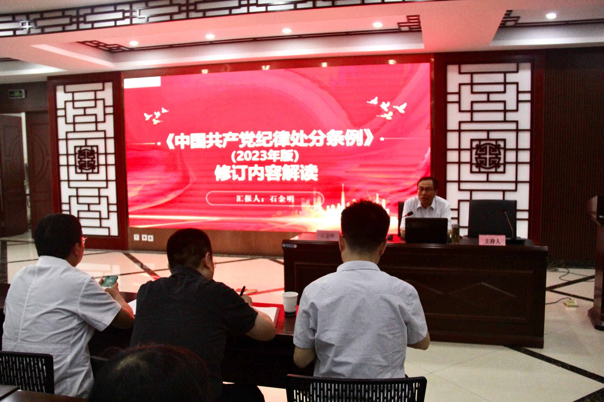 石金明从《中国共产党纪律处分条例》修订的重要意义、主要特点、主要内容和守纪要求四个方面进行了详细解读,重点讲解了《中国共产党纪律处分条例》修订的主要内容和守纪要求。他强调要坚定理想信念,掸去“思想尘”;守住廉洁底线,系好“安全带”;坚持学用结合,敲响“定力钟”。石金明的讲解,既高屋建瓴、紧密结合习近平总书记关于加强党的纪律教育重要论述,又结合实际、引用大量具体案例,为与会党员带来了一堂生动的党课、政治必修课、党纪学习教育辅导课和警示教育课。