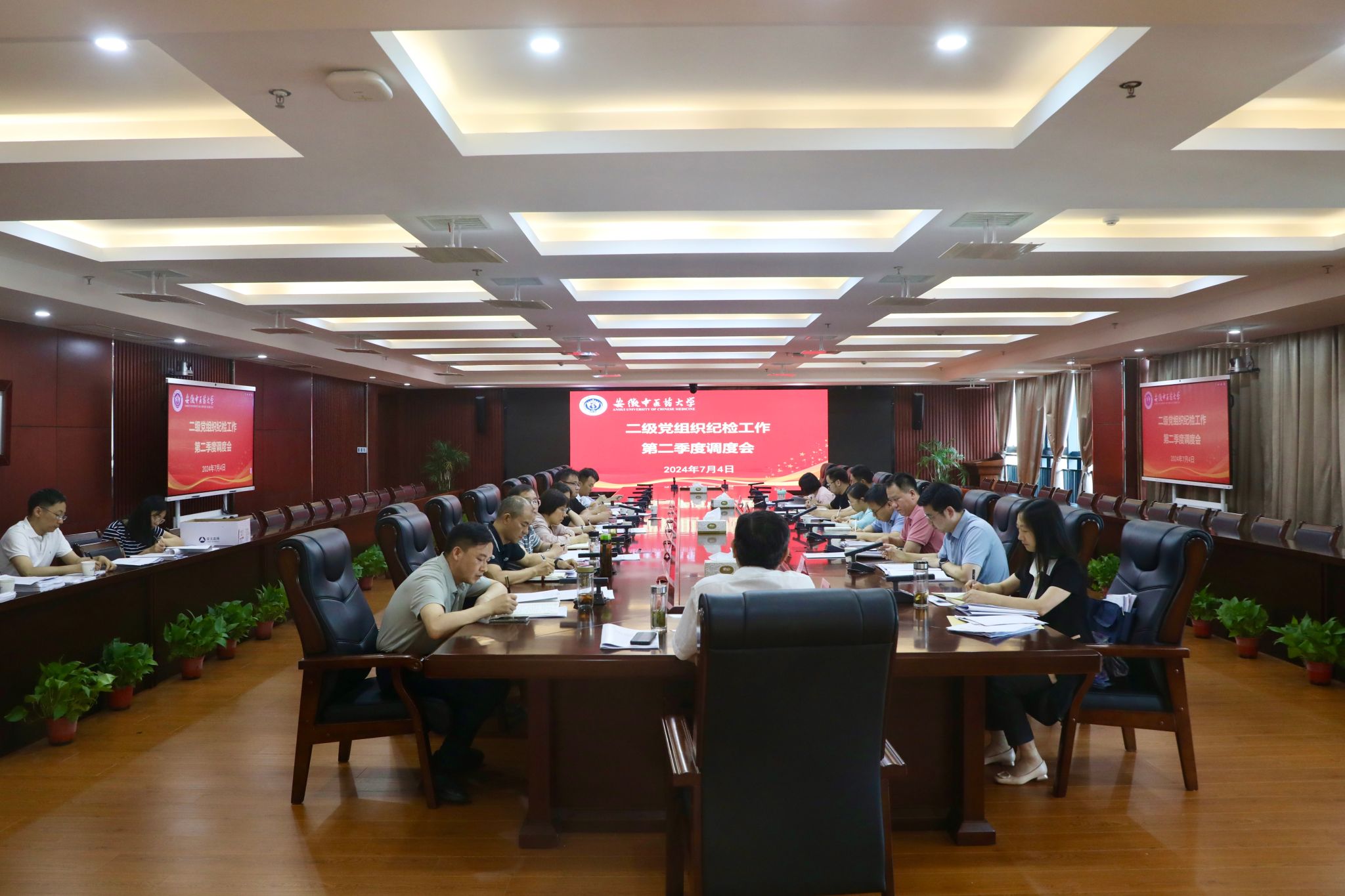 7月4日下午,校党委常委、纪委书记、监察专员石金明主持召开二级党组织纪检工作第二季度调度会,听取各二级党组织纪委书记、纪检委员工作汇报上半年纪检工作开展情况。