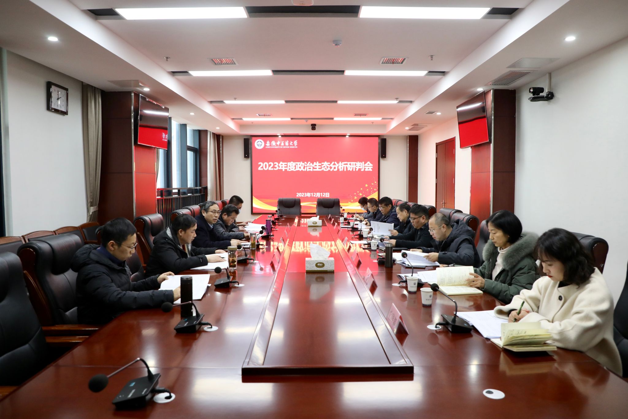 12月12日下午,学校召开2023年度政治生态分析研判会议,会议由党委常委、纪委书记、监察专员、政治生态分析研判领导小组副组长石金明主持。