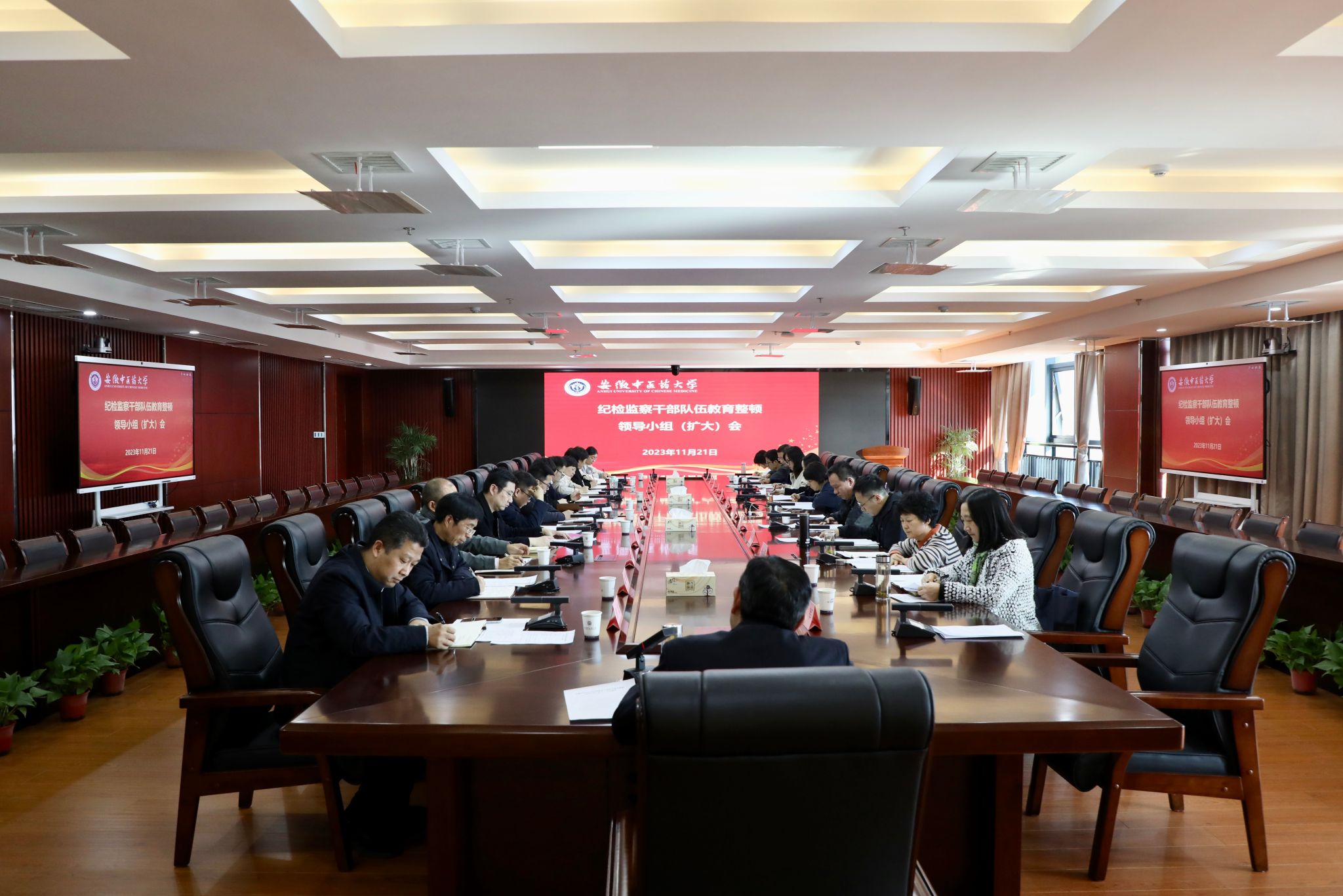 11月21日,校党委常委、纪委书记、监察专员石金明主持召开纪检监察干部队伍教育整顿领导小组(扩大)会,学校纪委委员,二级党组织纪检委员,三所附院纪委及校纪委办公室全体人员参会。