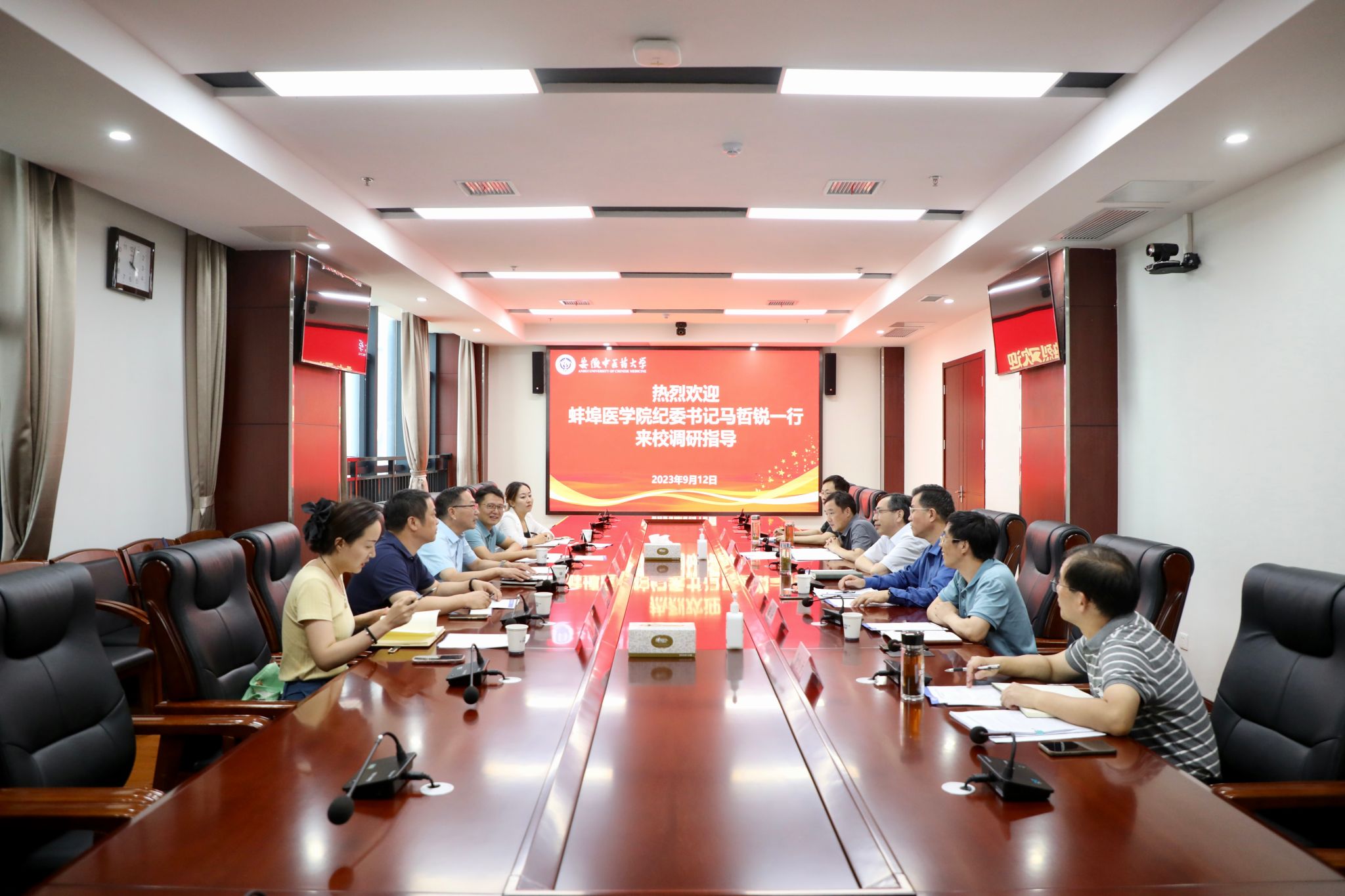 9月12日下午,蚌埠医学院党委常委、纪委书记、监察专员马哲锐一行来校调研交流。学校党委常委、纪委书记、监察专员石金明主持座谈会,校纪委办公室、巡察办公室部门负责人参会。