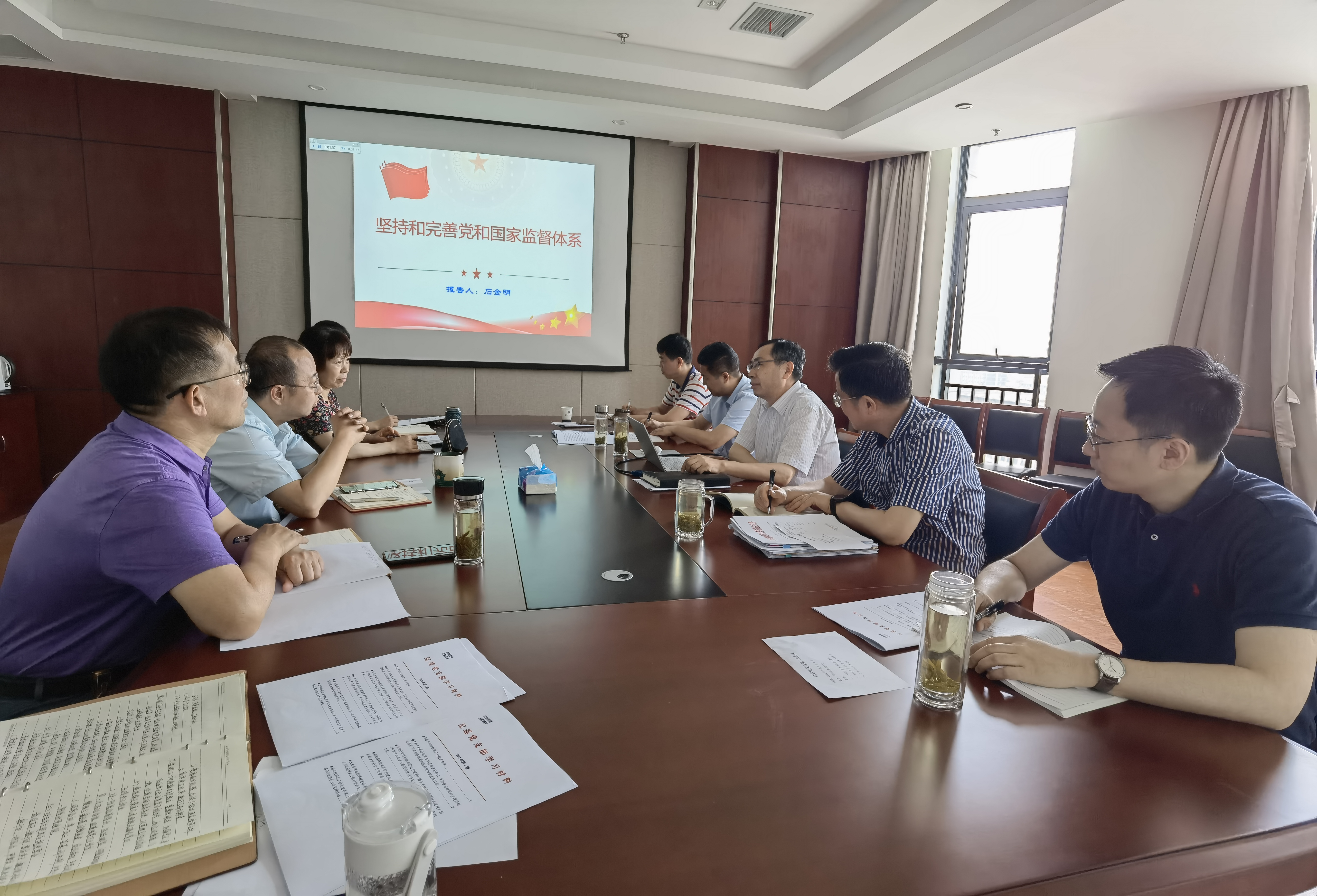 6月9日上午,学校党委常委、纪委书记、监察专员石金明以“坚持和完善党和国家监督体系”为题,为纪巡党支部讲授专题党课。纪巡党支部全体党员参加党课学习。