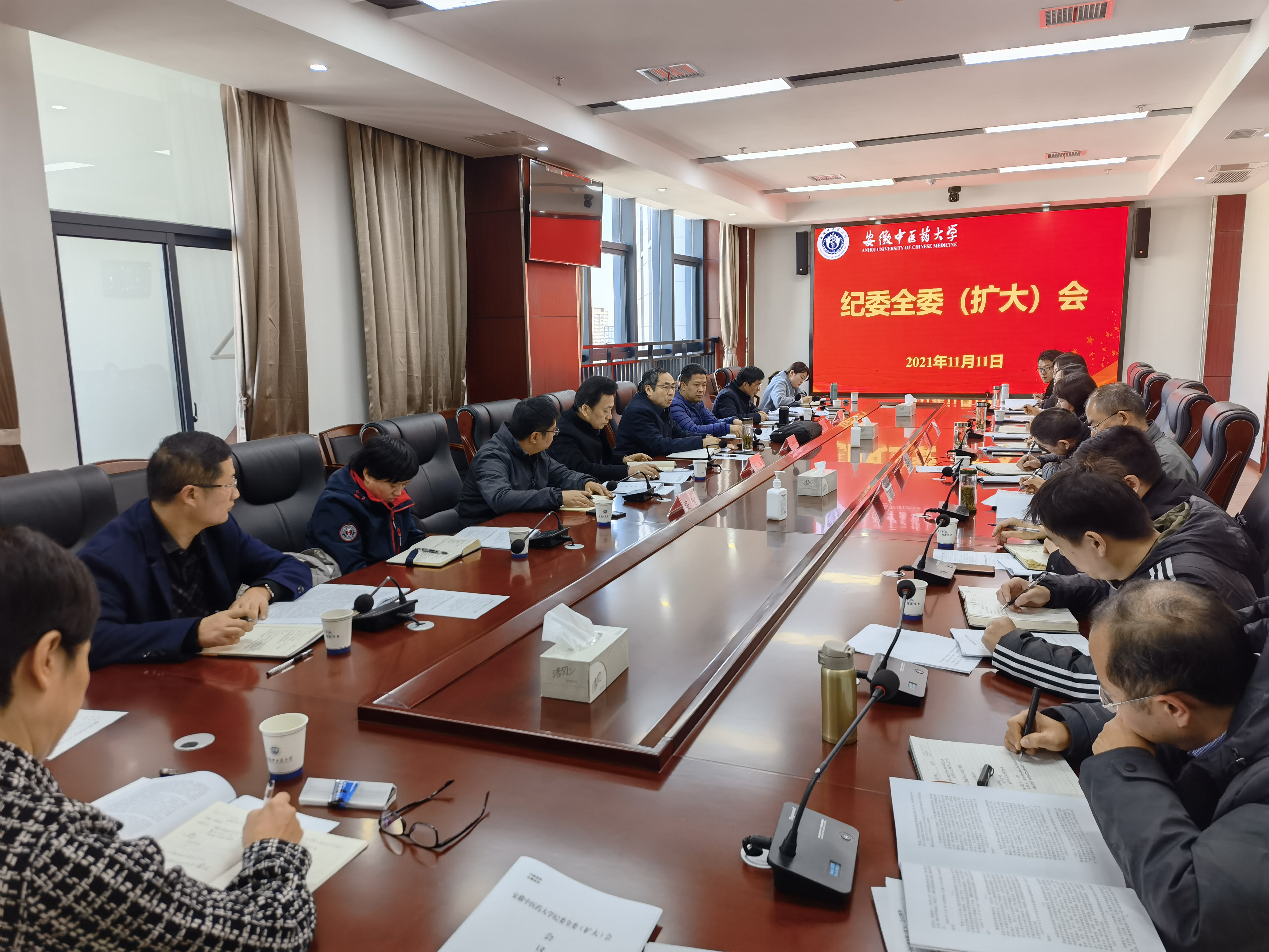 2021年11月11日上午,学校党委常委、纪委书记、监察专员石金明主持召开纪委全委(扩大)会议,传达学习省第十一次党代会精神,研究部署贯彻落实工作。校纪委委员、纪委办全体人员、三所附院纪委全体人员参会。