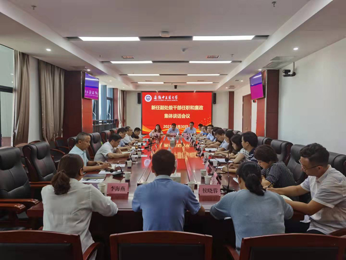 9月30日下午,学校集中对18名新提拔副处级干部进行任职谈话和廉政谈话。学校党委副书记张永群,学校党委常委、纪委书记、监察专员石金明出席会议,会议由学校党委常委、组织部部长武刚主持。组织部、纪委办公室有关同志列席会议。