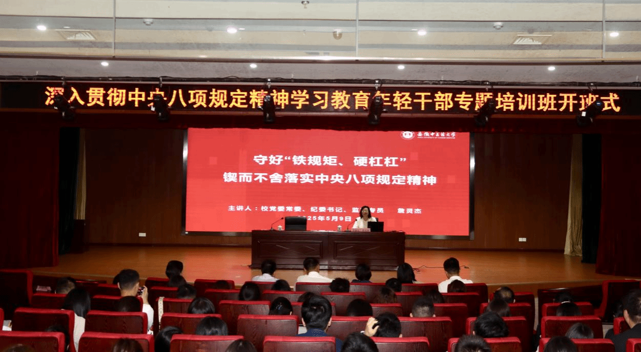 为加强对年轻干部的教育培养和管理监督,提升学校深入贯彻中央八项规定精神学习教育年轻干部专题培训班集体学习水平,5月9日下午,培训班特邀学校党委常委、纪委书记、监察专员詹灵杰作专题辅导报告,培训班全体参训学员参加。